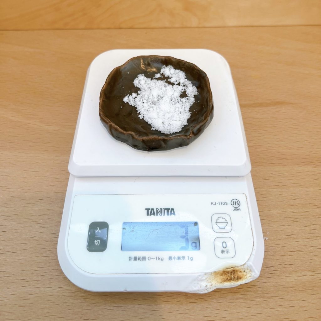 1Lに2.5g(小さじ1/2)の酢を加えると塩味の違いを補えました。